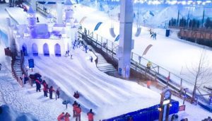 Curtir a neve artificial eterna no parque Snowland. Nunca fui, acho que vocês sabem o que penso de neve. Não esquio, escorrego na cidade. Mas há quem goste e se esbalde