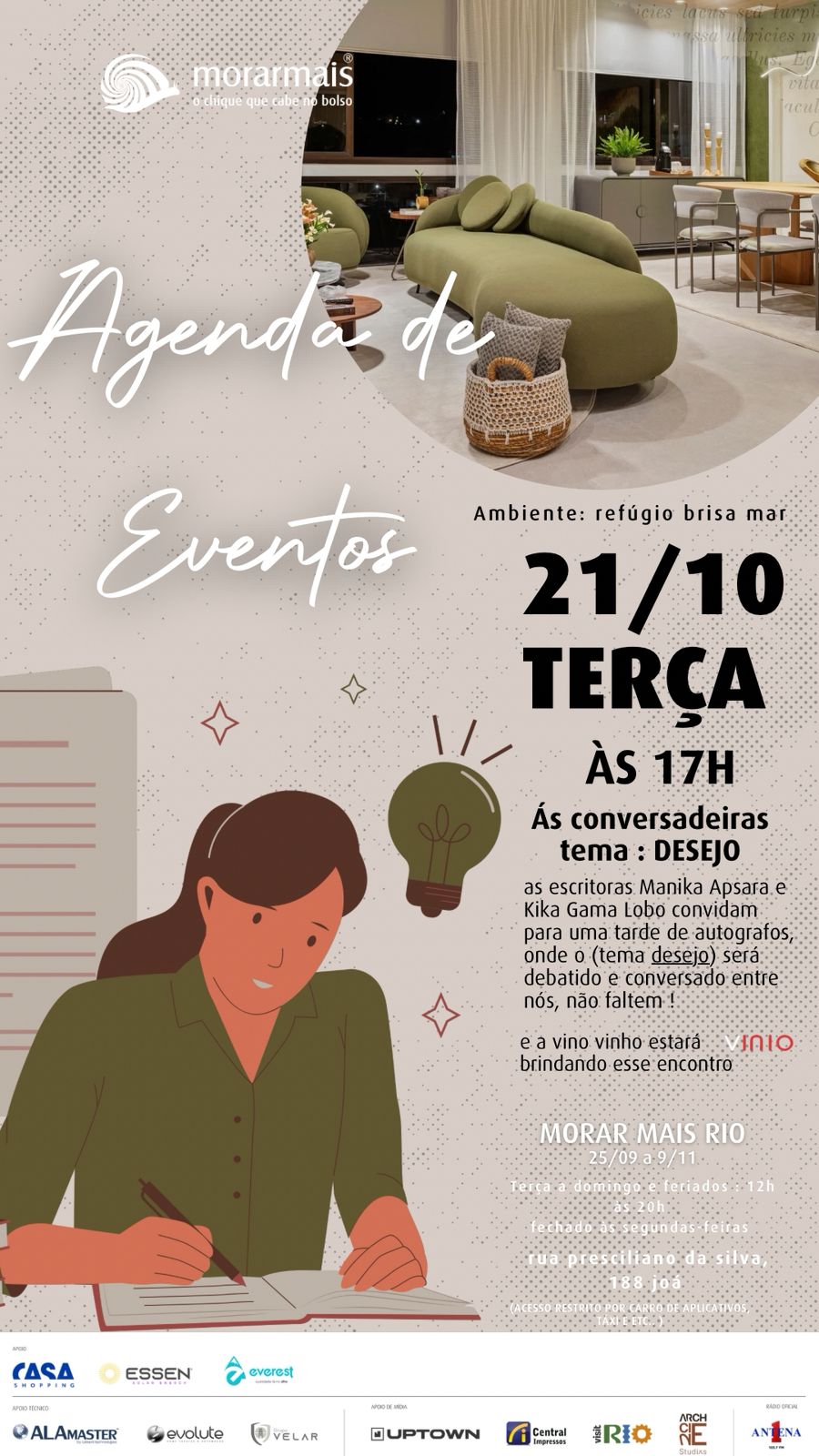 Será um dia de palestras e encontros que incluem desde Walter Rodrigues até Day Molina, designer da Nalimo, Organização por Yamê Reis