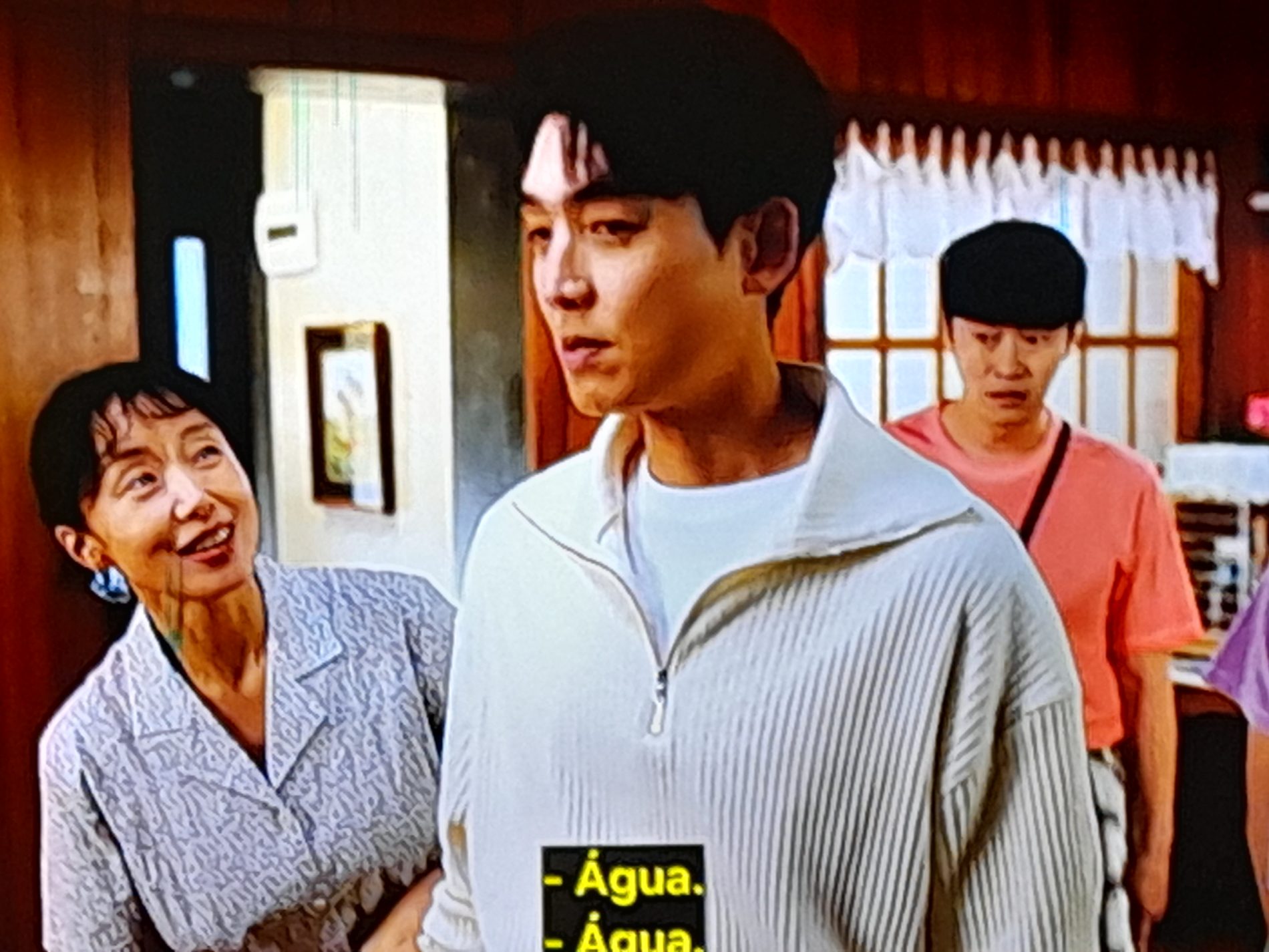 O casal protagonista e o Oh Eui-shik ao fundo, um papel importante como o Nam Jae-woo